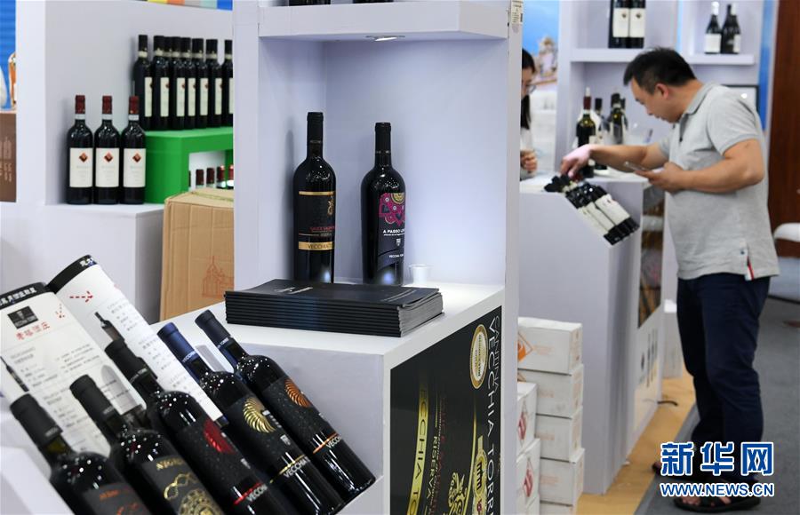 9月10日,参观者在第九届中国(贵州)国际酒类博览会上选购红酒。新华社记者 杨文斌 摄