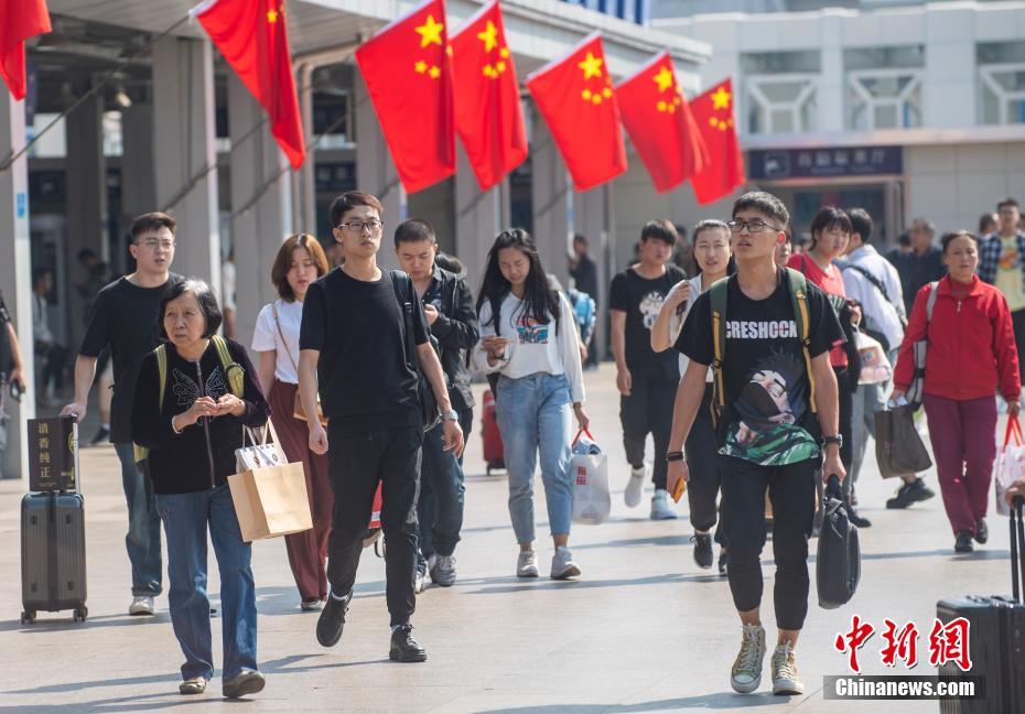 9月30日,山西太原火车站,旅客陆续进站。国庆假期将至,中国多地铁路迎来客流高峰。中新社记者 武俊杰 摄