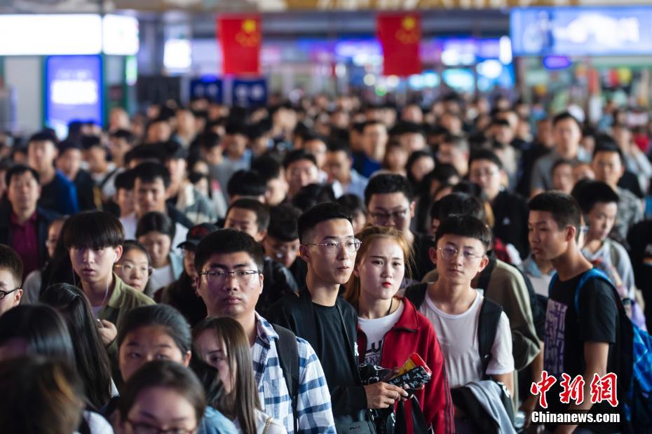 9月30日,山西太原火车站,旅客排长队进站。国庆假期将至,中国多地铁路迎来客流高峰。中新社记者 武俊杰 摄