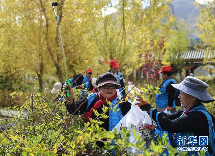10月20日,西藏自治区禁止白色污染协会环保志愿者在拉萨滨河公园内捡拾垃圾。 当日,西藏自治区禁止白色污染协会在拉萨滨河公园内举行成立大会。 西藏自治区禁止白色污染协会于今年4月得到西藏自治区民政厅批准,是以开展禁止西藏白色污染公益性环保活动为主的非盈利性社会团体,目前已有100多名环保志愿者。 新华社记者 晋美多吉 摄