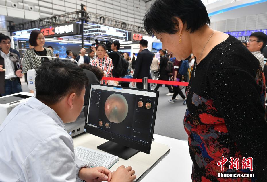 10月21日,一名观众通过智慧医疗设备查看自己的身体情况。在浙江乌镇举行的第六届世界互联网大会“互联网之光”博览会目前已吸引超7万人次观众参观。本届博览会共有来自全球的600余家企业亮相。以远程驾驶、5G机器人等为代表的“高精尖”科技吸睛无数。一批应用人工智能技术服务民众生活、体现科技温度的科技成果,自博览会开幕以来同样成为聚集人气的“明星”。中新社记者 张茵 摄