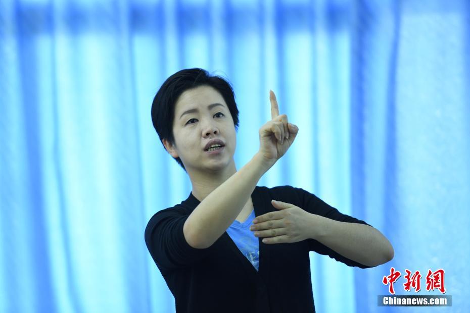 近日,中国首位聋人语言学博士郑璇在重庆师范大学特教楼用手语为24名聋生上手势汉语课。今年38岁的郑璇是重庆师范大学教授,清晰流畅的普通话,说话时不时发出爽朗的笑声,若不是她左耳上露出的助听器,大家很难把郑璇与“聋人”联系在一起。郑璇2岁时因医疗事故坠入无声世界,经过漫长的语言康复训练,她克服辨音、发音等重重困难,依靠双眼“看课”和课外自主学习,先后考入武汉大学和复旦大学,并于2009年获得博士学位,成为中国首位聋人语言学博士。此外,她还精通汉语、英语、中国手语和美国手语。十年的教师生涯,郑璇培养的特殊教育毕业生近800人,其中毕业聋生从教率达到30%。中新社记者 陈超 摄