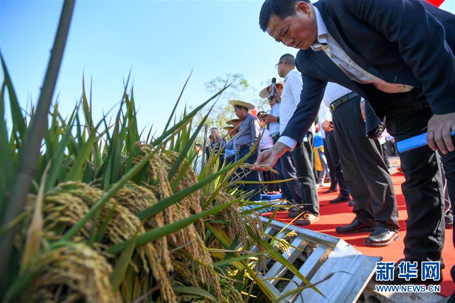 这是第三代杂交水稻新组合试验示范衡南基地测产现场(10月21日摄)。