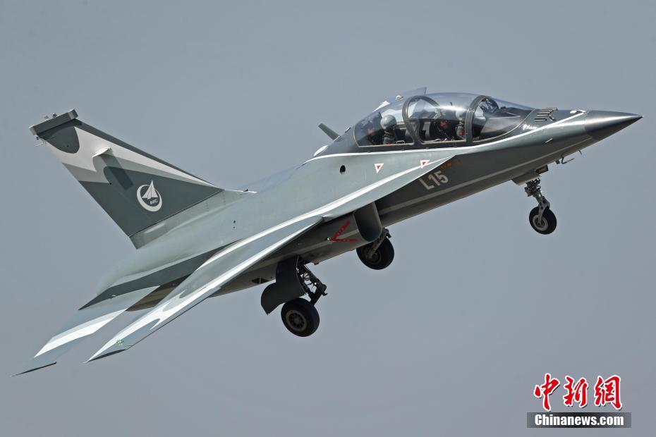 11月2日,中国自主研发的新一代多用途高级战斗教练机L15,在2019南昌飞行大会进行飞行表演。当日,以“江西飞机飞起来”为主题的2019南昌飞行大会在南昌瑶湖机场开幕。中新社发 郑雪峰 摄
