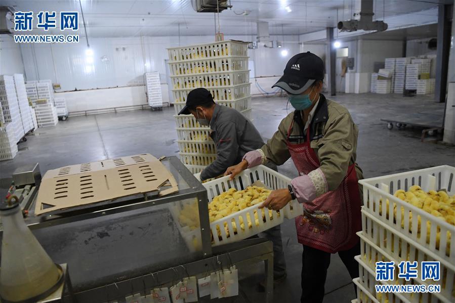 近年来,甘肃省镇原县全力打造肉鸡全产业链项目,先后建起孵化场、养殖场、屠宰厂、饲料厂等。今年以来,当地龙头企业甘肃中盛农牧发展有限公司积极与东部先进企业合作整合,对原有厂房和生产线进行升级改造,恢复并逐渐扩大产能,计划在三年内建成1.2亿羽肉鸡全产业链项目。截至目前,19个肉鸡养殖场今年共投放白羽肉鸡鸡苗1681万羽,肉鸡加工厂日屠宰量达9万只,肉鸡全产业链项目相关产业吸收近2000名本地员工上岗就业。 新华社记者 马宁 摄