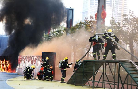 兰州消防利用“高精尖”器材进行协同作战梯次进攻灭火演练