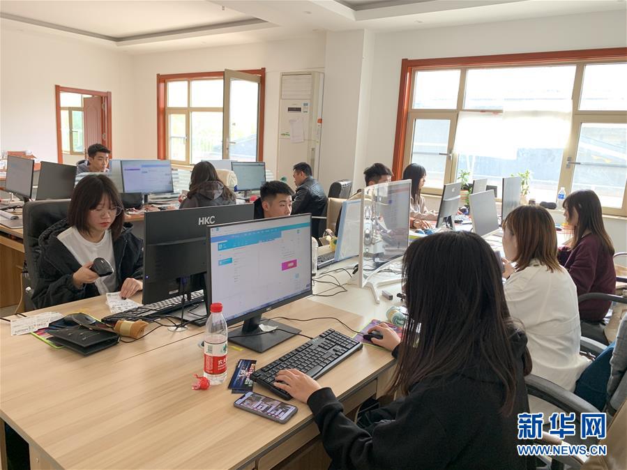 清河县羊绒小镇某羊绒服饰店的客服在工作(11月7日摄)。新华社记者 杜一方 摄