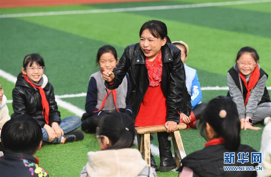 苏晓琳在南通启东紫薇小学体育场为学生讲述自己的故事(11月22日摄)。新华社记者 季春鹏 摄