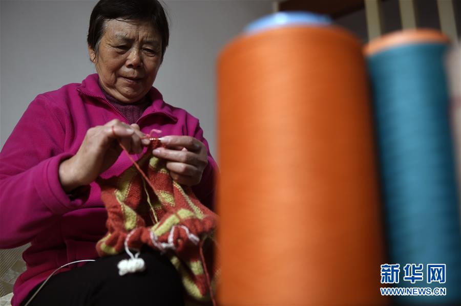 “毛衣奶奶”顾金珍在家中织毛衣(11月20日摄)。新华社记者 韩瑜庆 摄