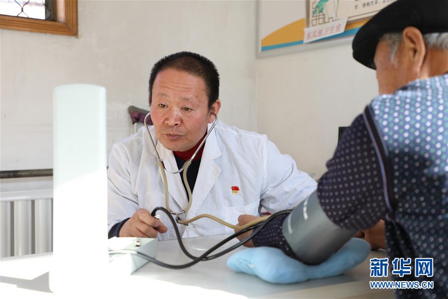 12月2日,石志利在北京市房山区东瓜地村卫生站为村民看病。新华社发(贾元杰 摄)