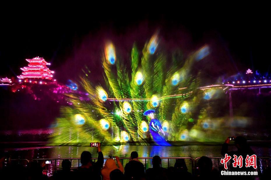 12月7日晚,福建沙县3D水幕秀吸引了许多市民和旅客前来观赏。据介绍,3D水幕秀《印象沙县》总时长12分钟,将裸眼3D视频、音乐、互动与灯光等完美结合,融合在山水间,已经成为当地一景。中新社记者 张斌 摄