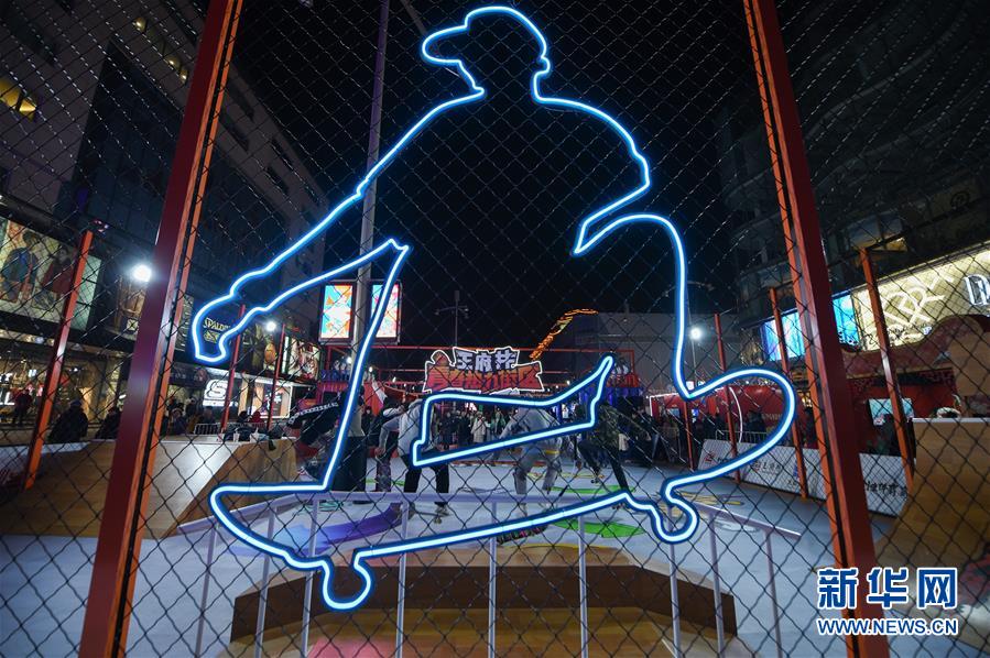 12月20日,演员在新开街的王府井步行街北延段表演滑板表演。新华社记者 鞠焕宗 摄