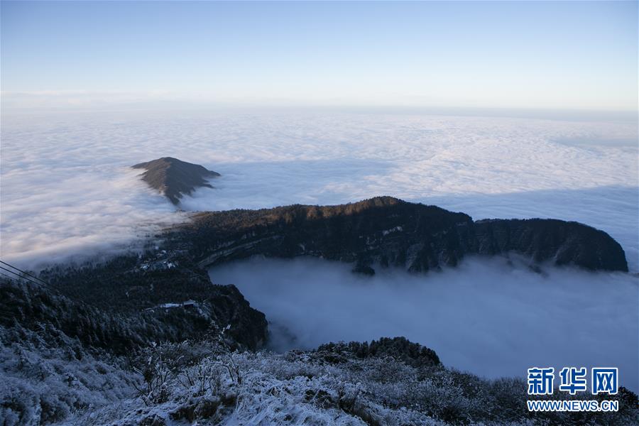 这是12月28日在四川省峨眉山金顶拍摄的景色。 时值冬日,峨眉山银装素裹、宛如仙境。 新华社记者 李梦馨 摄