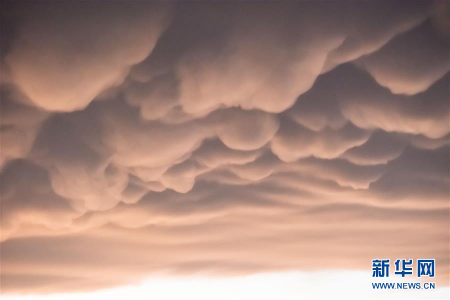 1月6日在贵阳上空出现的“乳状云”。 当日傍晚,贵阳上空出现“乳状云”。据了解,乳状云又称“乳状积云”,是指形状与牛乳房相似的云层。 新华社记者 刘续 摄