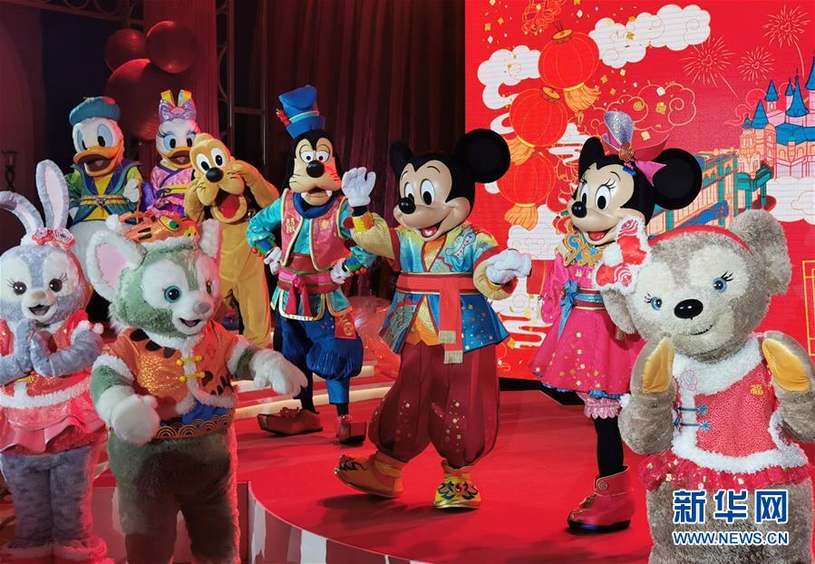 1月9日,换上鼠年春节定制新装的米奇、米妮和伙伴们在发布会现场亮相。 当日,上海迪士尼举行新春发布会,宣布自1月13日至2月9日,上海迪士尼度假区将以特色主题活动贯穿整个农历鼠年春节,在中国年味中融入丰富的米奇和米妮元素,为游客奉上中西合璧的春节“菜单”。 新华社记者 任珑 摄