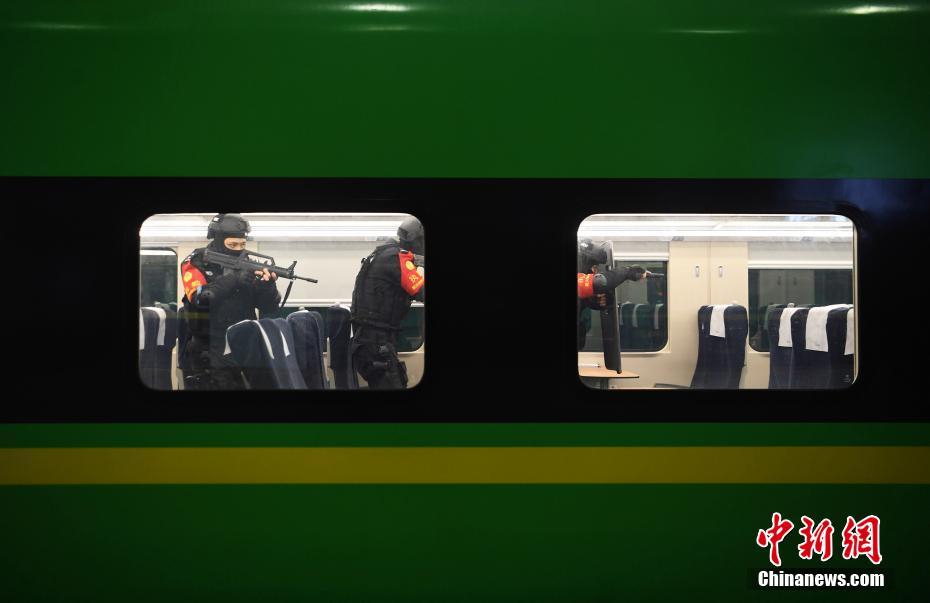 图为特警正在车厢内开展模拟处突实战演练。陈超 摄