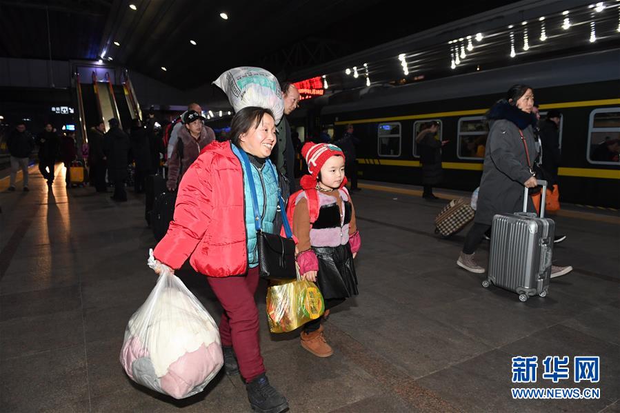 1月10日,在北京火车站,K4219次列车乘客在站台上准备乘车。 当日,2020年春运正式启动,众多小朋友也踏上旅途。 新华社记者 鞠焕宗 摄