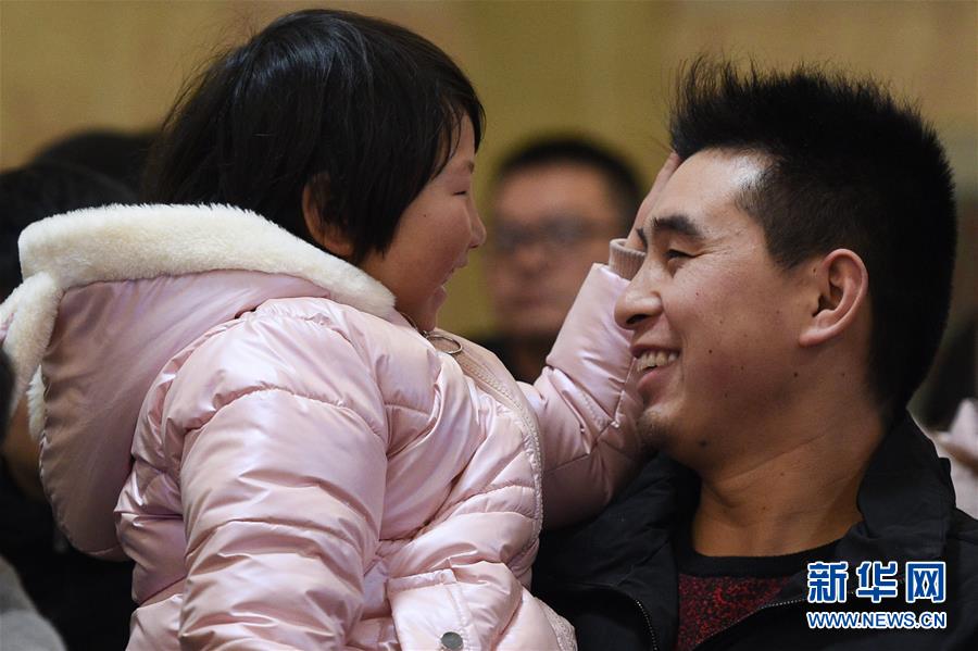 1月9日,在广州站,家长抱着小朋友准备进站。 当日,2020年春运正式启动,众多小朋友也踏上旅途。 新华社记者 胥兆瑞 摄