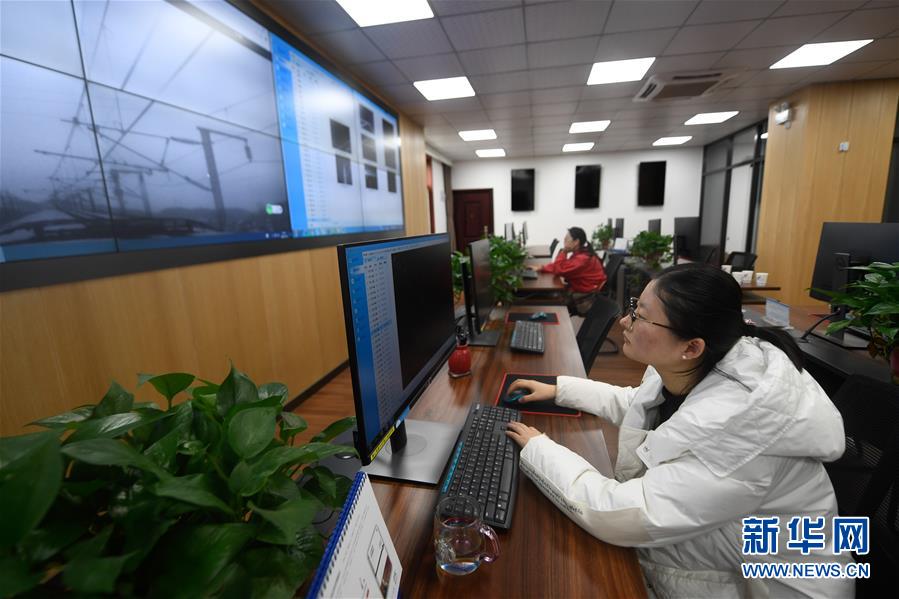 1月14日,在中国铁路上海局集团有限公司杭州供电段供电检测分析室,分析员对采集的画面进行逐一检查。新华社记者 黄宗治 摄