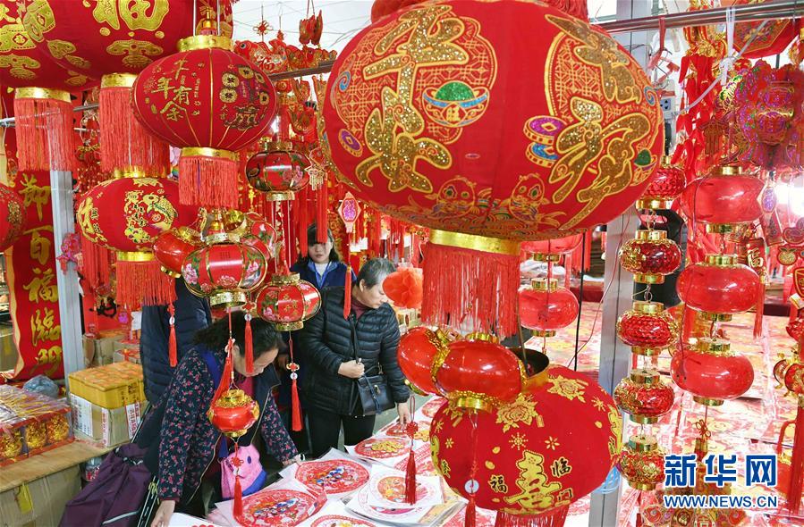 1月20日,人们在昆明市官渡区年货市场选购节日饰品。新华社记者杨宗友摄
