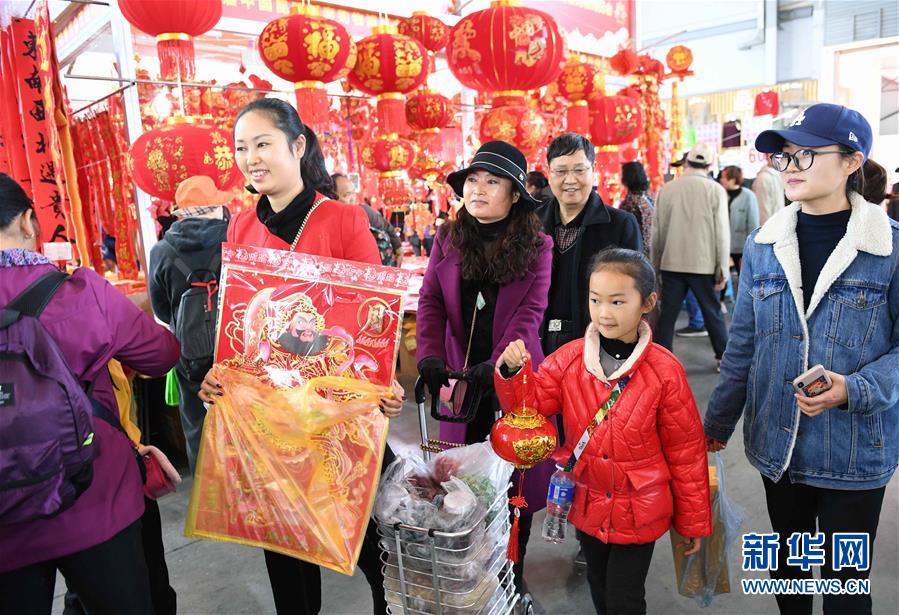 1月20日,人们在昆明市官渡区年货市场选购年货。新华社记者杨宗友摄