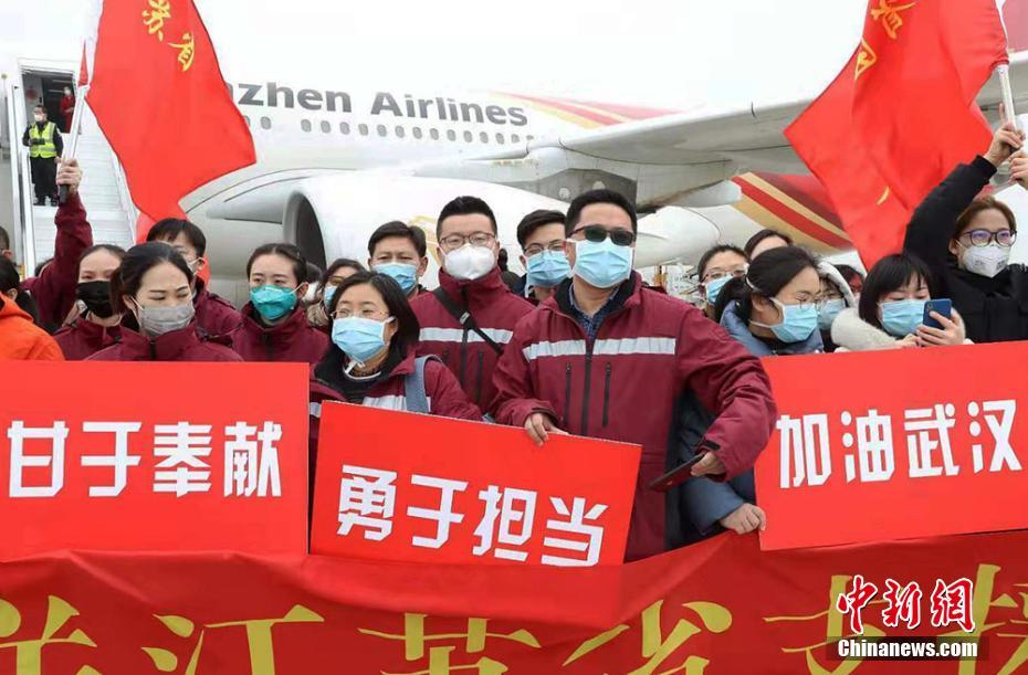 1月28日,由139名医务工作者组成的江苏第二批援湖北医疗队从南京禄口机场出发,飞赴湖北武汉。据介绍,他们分别来自江苏省内31家医院,同时,江苏省疾控中心还派出了两名消毒专家,负责驻地环境卫生及其它。图为江苏第二批援湖北医疗队队员们合影出发。 冯家清 摄