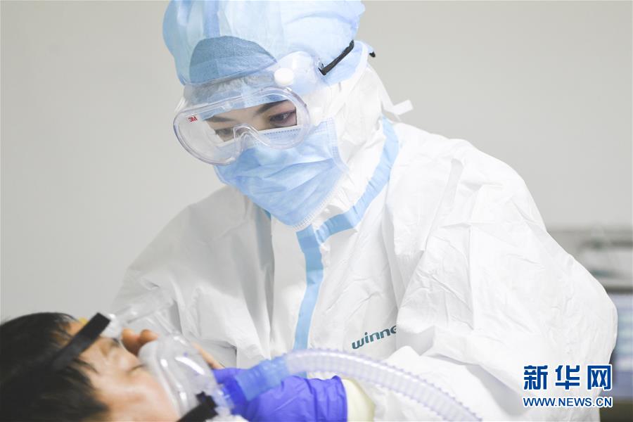 2月2日,在重庆三峡中心医院重症隔离病房,黄霞为患者治疗。新华社记者王全超摄
