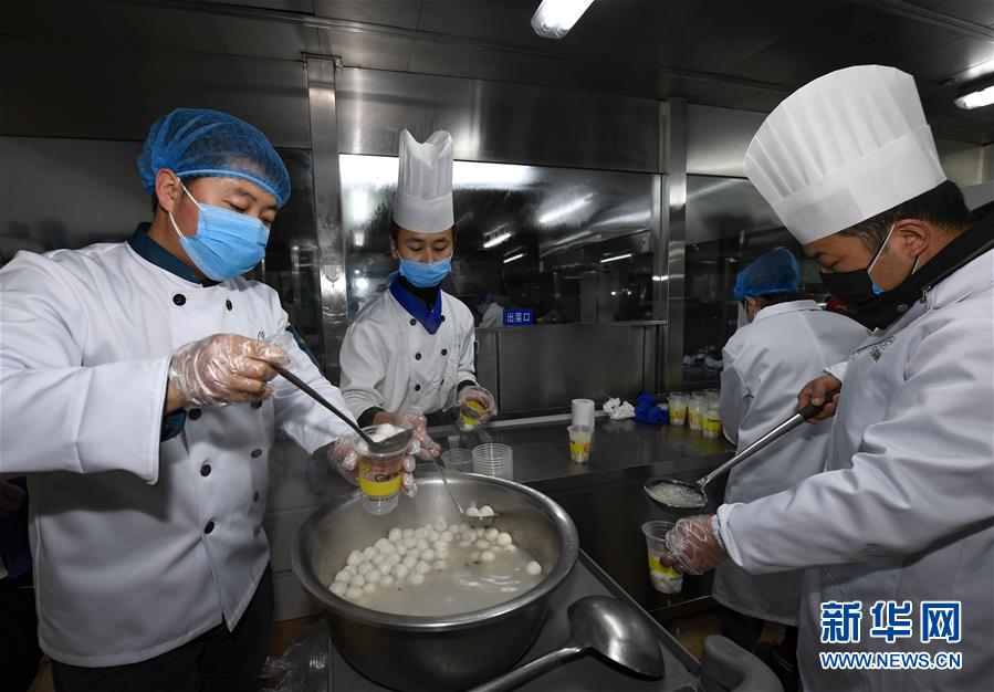 2月8日,宁夏银川市宁味楼餐饮员工为疫情防控一线工作人员准备元宵。 当日是元宵节,宁夏银川市宁味楼、伊盛手抓、昊御轩等多家符合疫情期间餐饮配送标准的餐饮企业,为疫情防控一线工作人员赠送热腾腾的元宵和爱心餐,表达对防疫人员的问候。 新华社记者 冯开华 摄