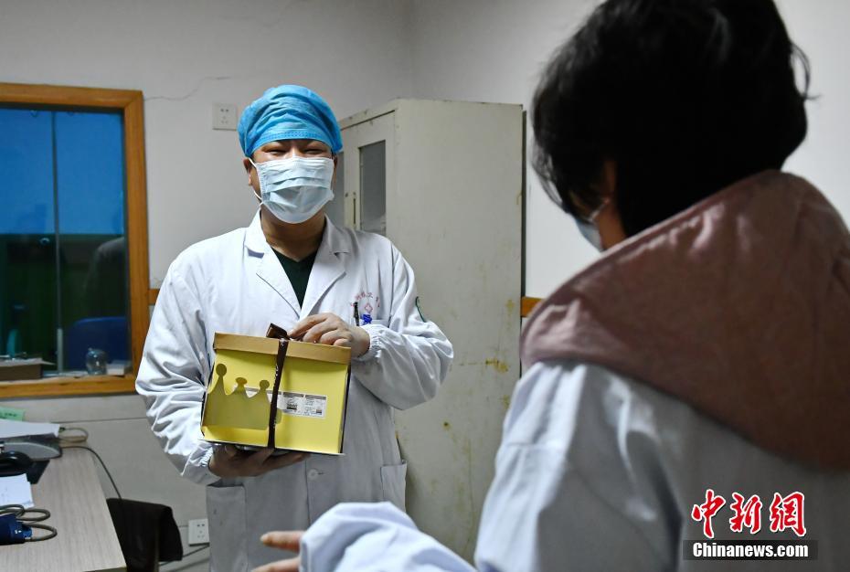 同事给何伟标送上生日蛋糕,他才意识到当天是自己的生日。中新社发 袁云 摄