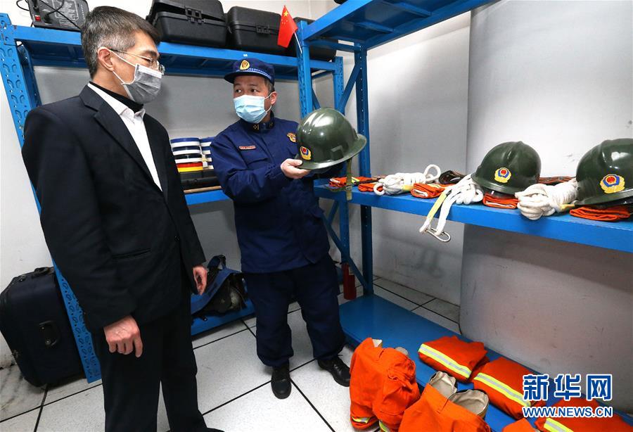 2月21日,消防人员在检查社区微型消防站的消防安全设施。 近日,上海市一些企业单位有序复工复产,上海市长宁区消防救援支队主动作为,对辖区内民生密切相关的企业进行安全生产消防指导,力保消防安全。 新华社记者 陈飞 摄