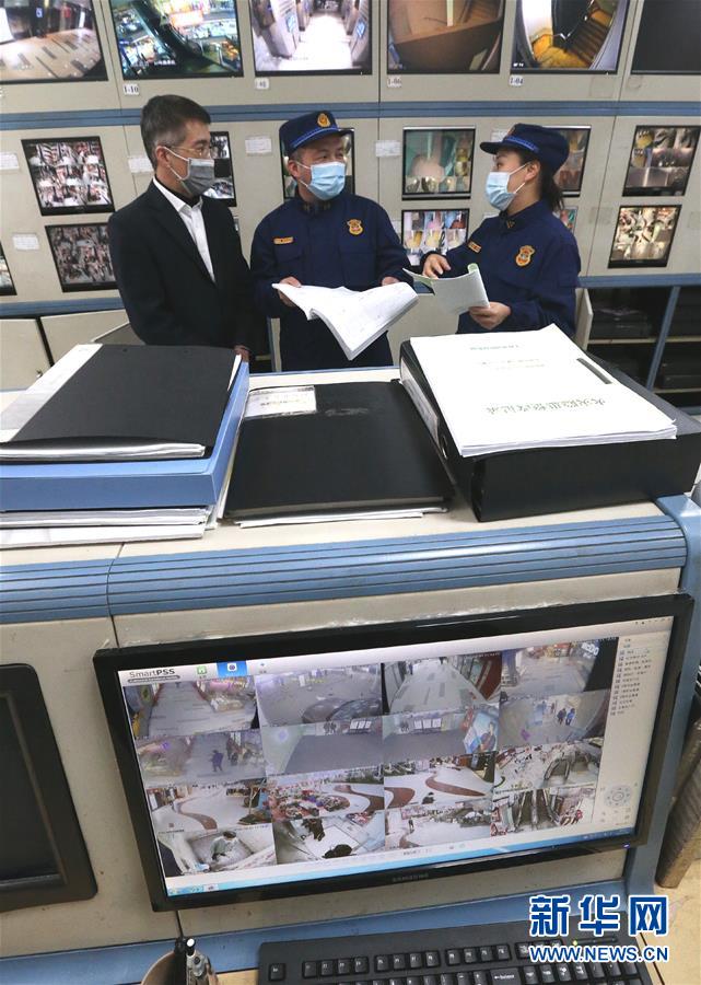 2月21日,消防人员在检查大型商务写字楼内的消防安全监控中心。 近日,上海市一些企业单位有序复工复产,上海市长宁区消防救援支队主动作为,对辖区内民生密切相关的企业进行安全生产消防指导,力保消防安全。 新华社记者 陈飞 摄