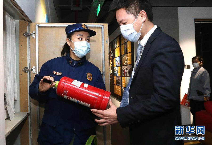 2月21日,消防人员在检查大型商务写字楼内的消防安全设施。 近日,上海市一些企业单位有序复工复产,上海市长宁区消防救援支队主动作为,对辖区内民生密切相关的企业进行安全生产消防指导,力保消防安全。 新华社记者 陈飞 摄