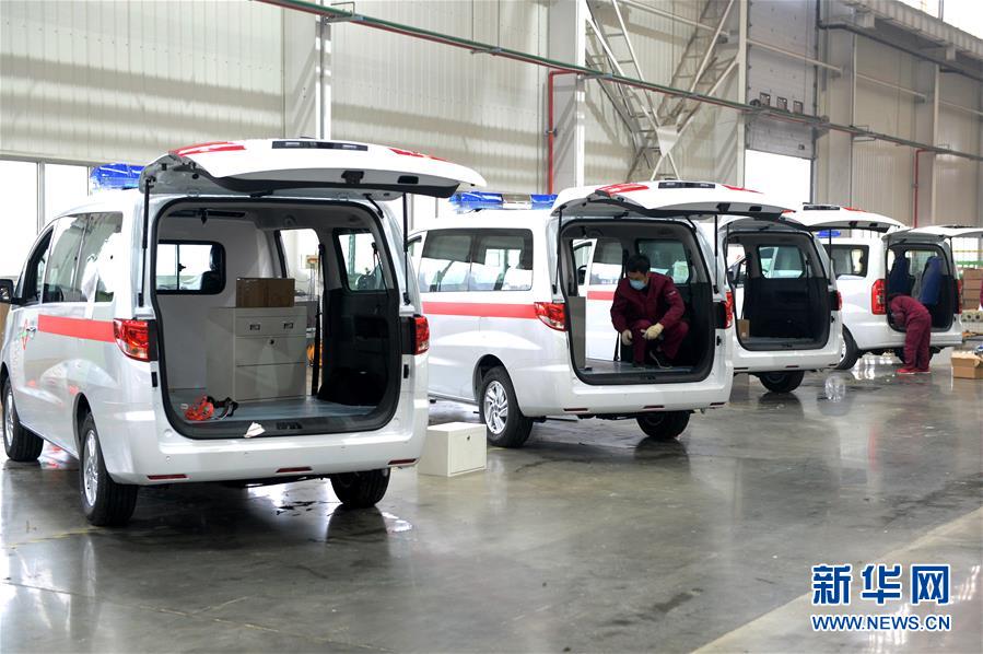 2月25日,工作人员在江淮汽车商务车公司改装救护车。 为助力新冠肺炎疫情防控,位于安徽省合肥市的江淮汽车商务车公司于2月10日复工,开足马力生产医疗救护车,目前已有100多辆救护车交付湖北、河南、山东等抗疫一线使用。 新华社发(黄博涵摄)