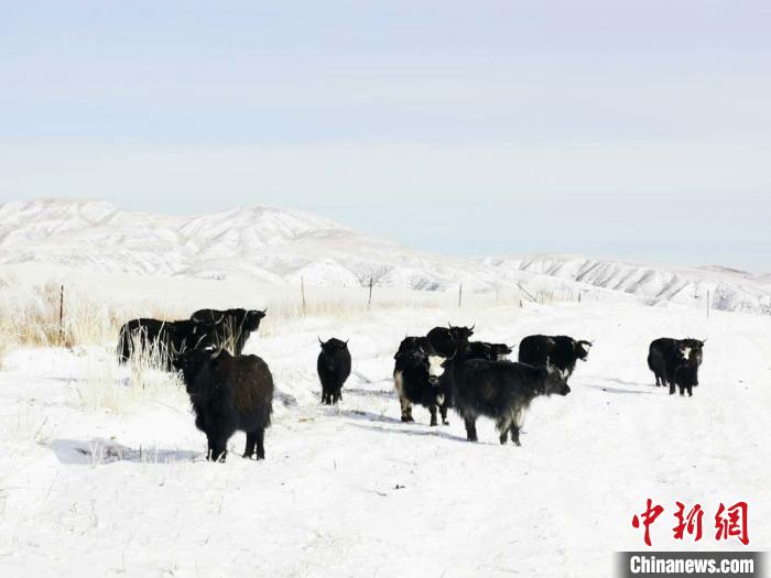 图为祁连雪山下的牦牛。 武雪峰 摄