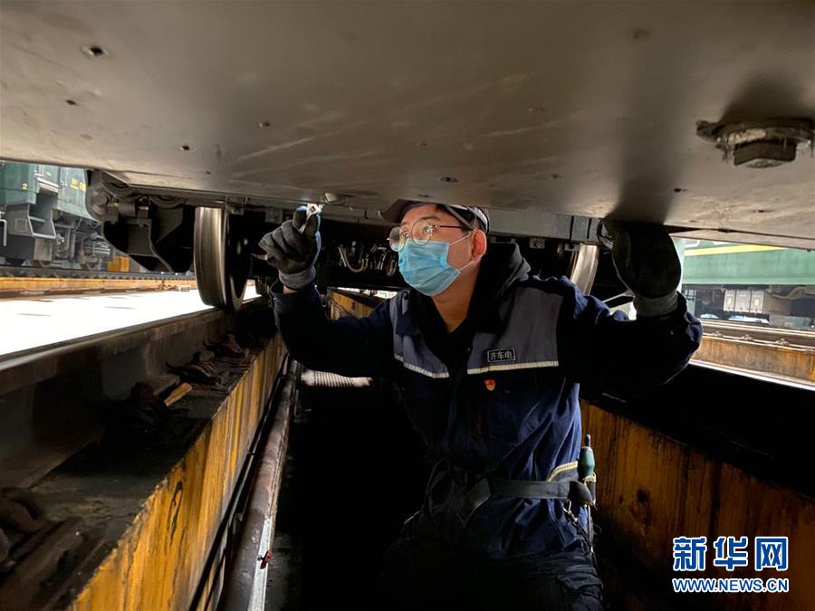 3月2日,中国铁路哈尔滨局集团有限公司齐齐哈尔北车辆段车电车间集便器班组检修工房禹呈在检修列车集便器。 新华社发(王双林 摄)