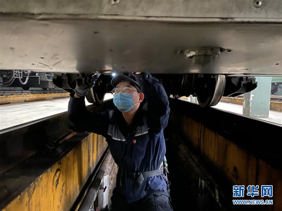 3月2日,中国铁路哈尔滨局集团有限公司齐齐哈尔北车辆段车电车间集便器班组检修工房禹呈在检修列车集便器。 新华社发(王双林 摄)