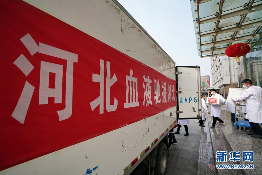 3月2日,河北省血液中心工作人员将打包好的血液搬上冷藏车。新华社记者 牟宇 摄
