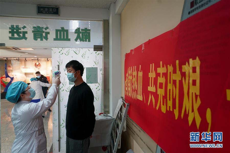 3月4日,在南京红十字血液中心,市民在献血前接受体温测量。新华社记者 季春鹏 摄