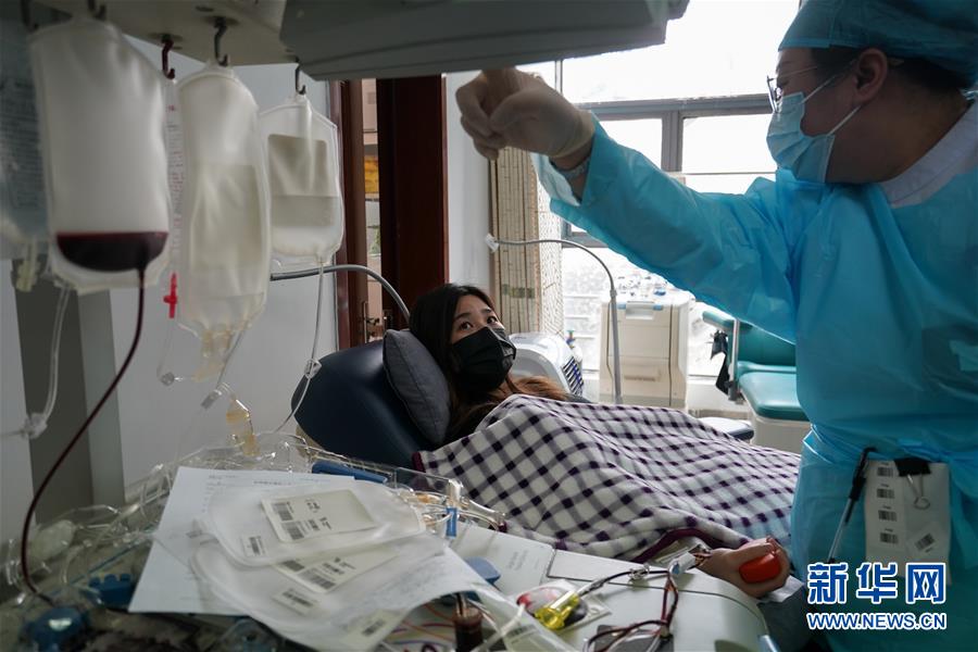 3月4日,在南京红十字血液中心,市民在捐献血小板。新华社记者 季春鹏 摄
