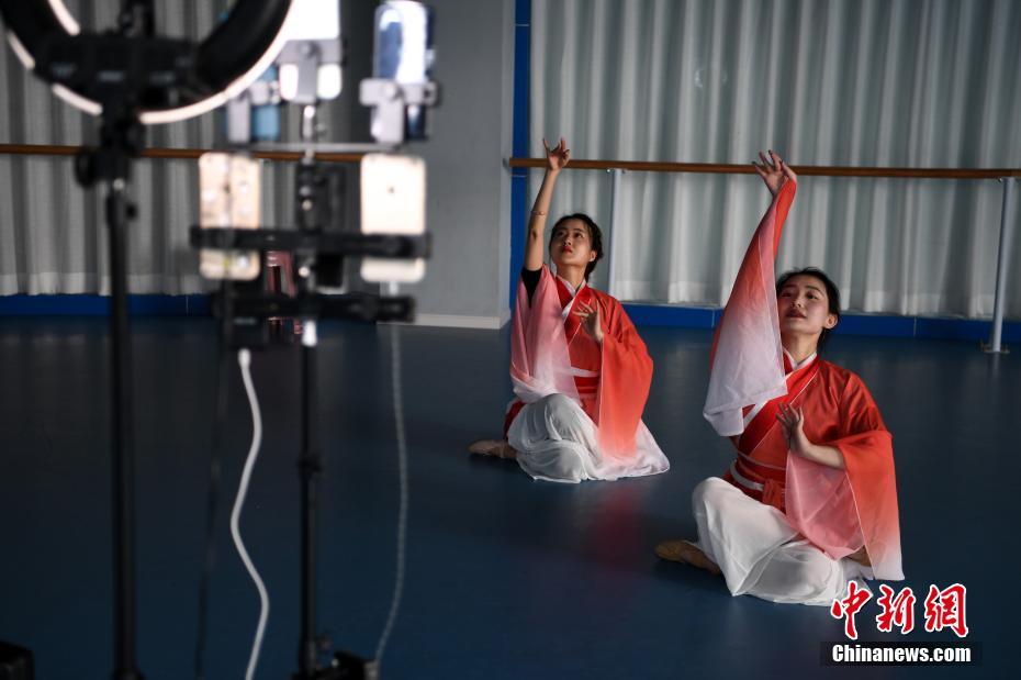 3月11日,老师网络直播舞蹈教学。疫情期间,昆明舞魅天下舞蹈学校停课不停学,分别采用直播和录播形式在多个直播平台对学员及舞蹈爱好者进行线上教授学习。中新社记者 康平 摄