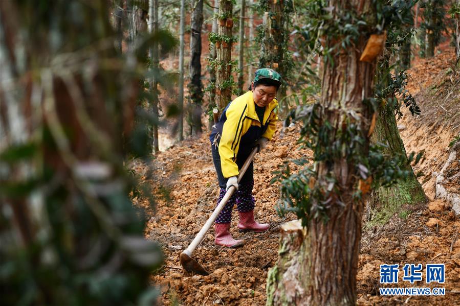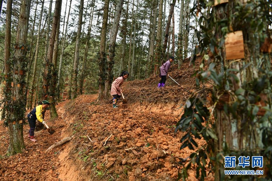 3月11日,农民在贵州省锦屏县万亩石斛示范基地套种中药材。 新华社记者 杨文斌 摄