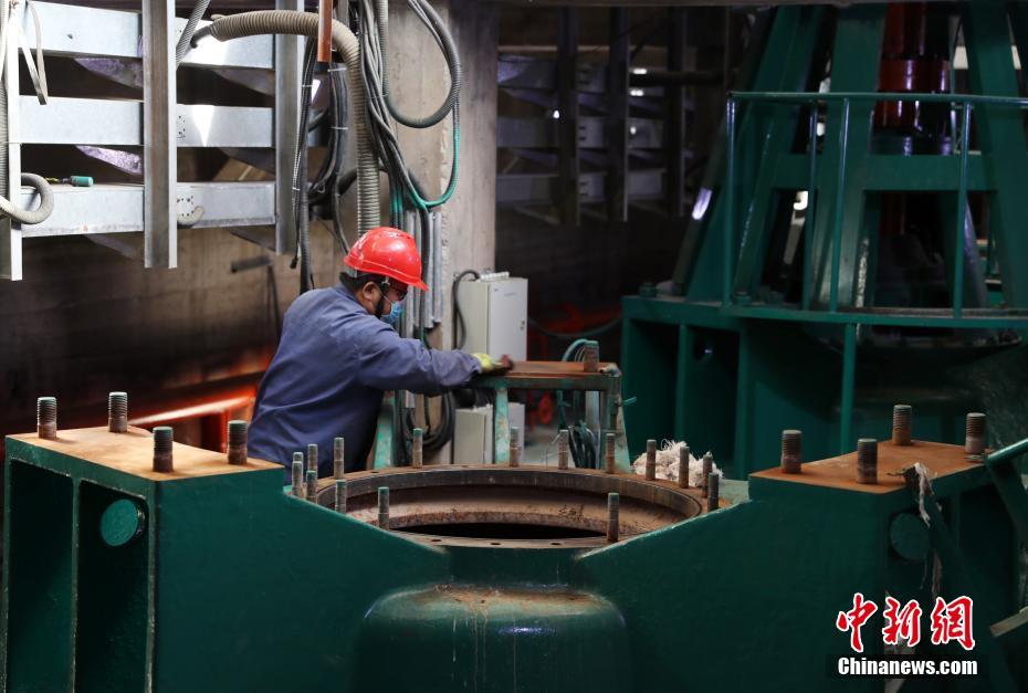 3月11日,探访位于宁夏吴忠市的陕甘宁盐环定扬黄工程首级泵站。据了解,为提前解决宁夏春灌用水和陕西省定边县、甘肃省环县紧急用水,宁夏水利厅安排专业人员对该工程的泵站、渠道等工程进行维修养护。图为工作人员对设备进行清污。中新社记者 于晶 摄