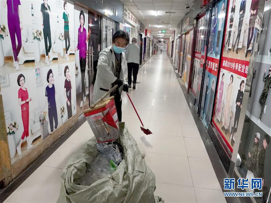 3月27日,商城清洁人员在商城内清扫垃圾。