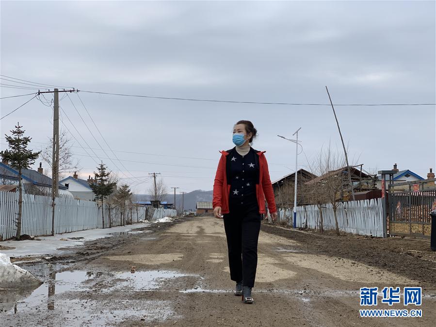 吉林省敦化市三河村党支部书记谷凤杰前去察看肉牛养殖情况(3月25日摄)。 新华社记者 段续 摄