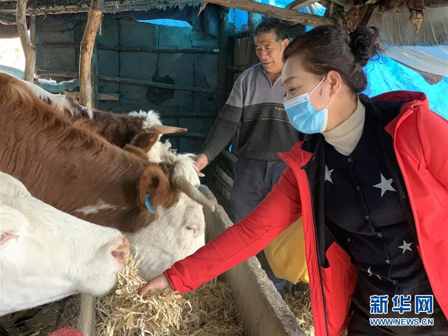 吉林省敦化市三河村党支部书记谷凤杰在村民家了解养牛情况(3月25日摄)。 新华社记者 段续 摄