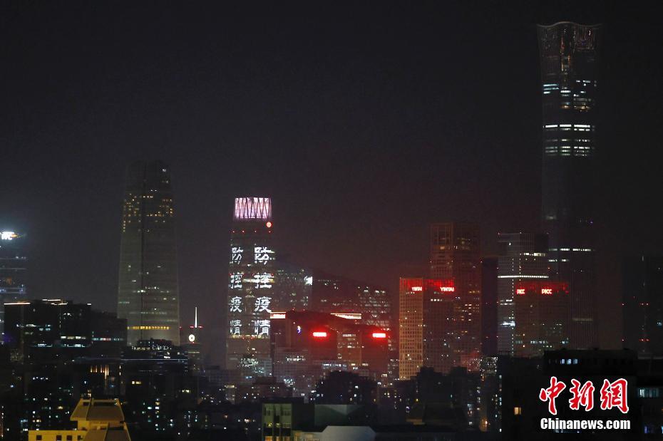 北京CBD地区为抗击疫情亮灯
