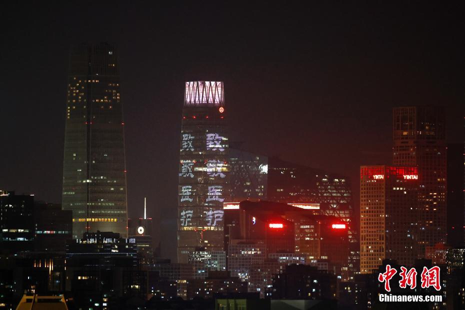 北京CBD地区为抗击疫情亮灯