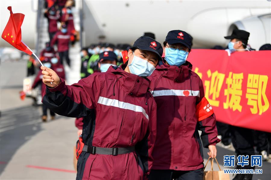 4月6日,陕西省第二批援鄂医疗队队员向迎接人员致意。 当日,陕西省第二批援鄂医疗队121人乘机抵达西安咸阳国际机场。至此,由陕西省派出的援鄂医疗队已全部平安返回。陕西省第二批援鄂医疗队于2月2日赴武汉,支援武汉协和医院西院。 新华社记者 刘潇 摄