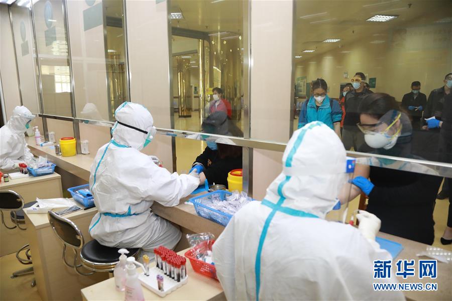 4月7日,市民在武汉大学中南医院体检中心抽血。 武汉将于4月8日解除离汉通道管控。7日,不少市民来到武汉大学中南医院体检中心体检,为复工做准备。据中南医院体检中心副主任程向群介绍,为满足复工人员的体检需求,体检中心特别推出“复工体检项目”,包括新型冠状病毒核酸(咽拭子)、新型冠状病毒核酸抗体、肺部CT检查等。据不完全统计,半天时间近300人完成体检。 新华社发(高翔摄)