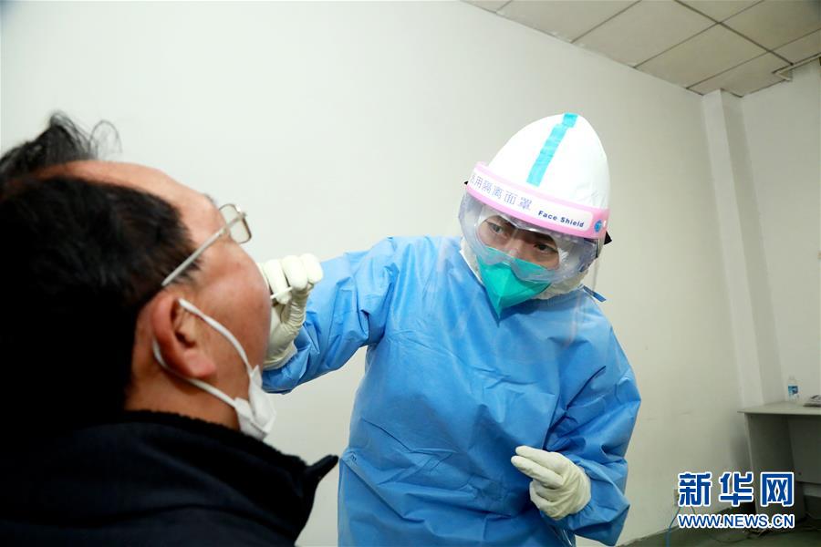 4月7日,市民在武汉大学中南医院体检中心做核酸咽拭子检查。 武汉将于4月8日解除离汉通道管控。7日,不少市民来到武汉大学中南医院体检中心体检,为复工做准备。据中南医院体检中心副主任程向群介绍,为满足复工人员的体检需求,体检中心特别推出“复工体检项目”,包括新型冠状病毒核酸(咽拭子)、新型冠状病毒核酸抗体、肺部CT检查等。据不完全统计,半天时间近300人完成体检。 新华社发(高翔摄)